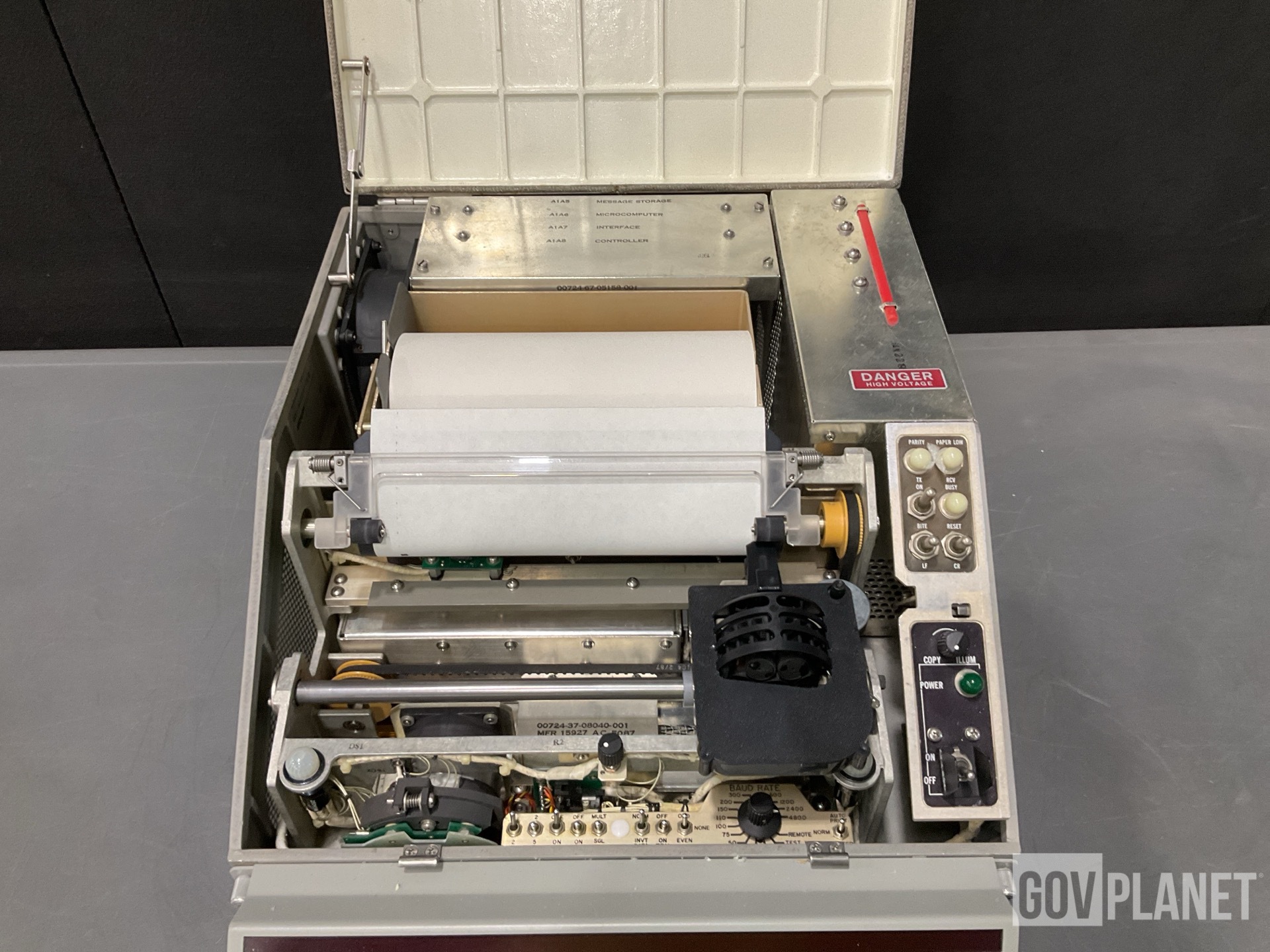 The AN/UGC-136CX is a ruggedized send-and-receive teleprinter, controlled by a microprocessor with an internal solid state memory, and full-message composition and editing capabilities; it prints data at a nominal 120 characters per second (1200 bps). It can transmit or receive at data rates from 50 to 9600 bps to or from the message storage memory, and can operate in switch-selectable Baudot or ASCII codes. The storage capacity of 64 messages or 256K random access memory (RAM), permits the short-term storage of received messages while the operator simultaneously composes and stores outgoing messages for transmission. Multiple communication ports also provide a bulk-storage device compatibility. |