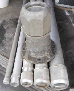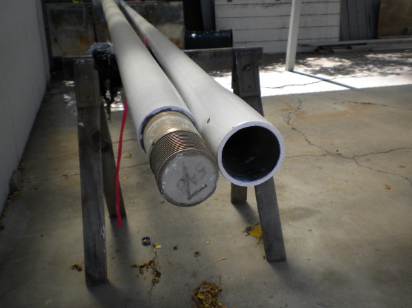 NT-66047 (with one section shortened) The NT-66047 is a 35-ft aluminum whip antenna composed of five equal lengths of 6061-T6 aluminum tube. The lengths are joined together by fitting the adaptor sleeve at the bottom of the upper pieces into the larger diameter lower pieces and securing the joint with a threaded cap and lock nut. |