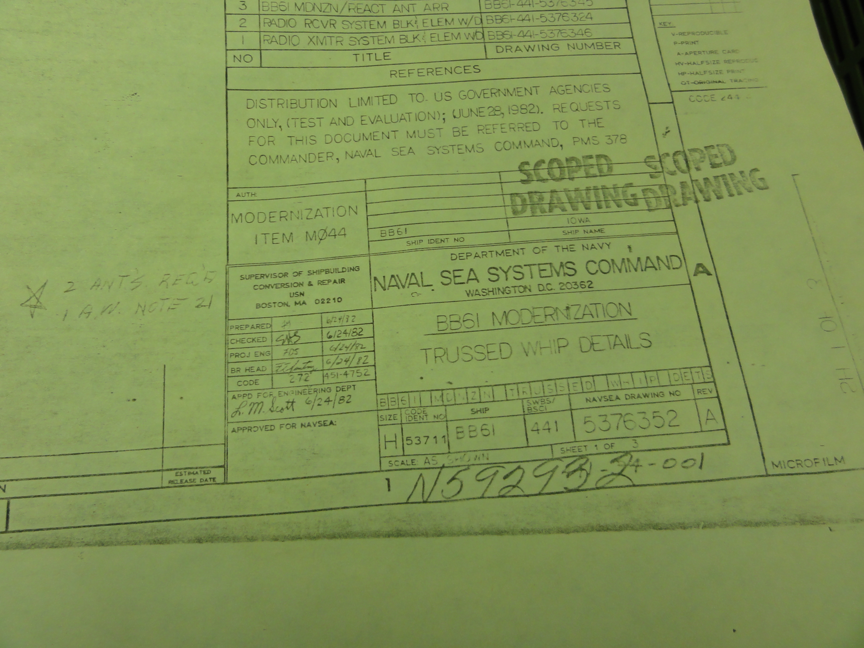 USS Iowa BB-61 Trussed Whip Antenna Drawings |