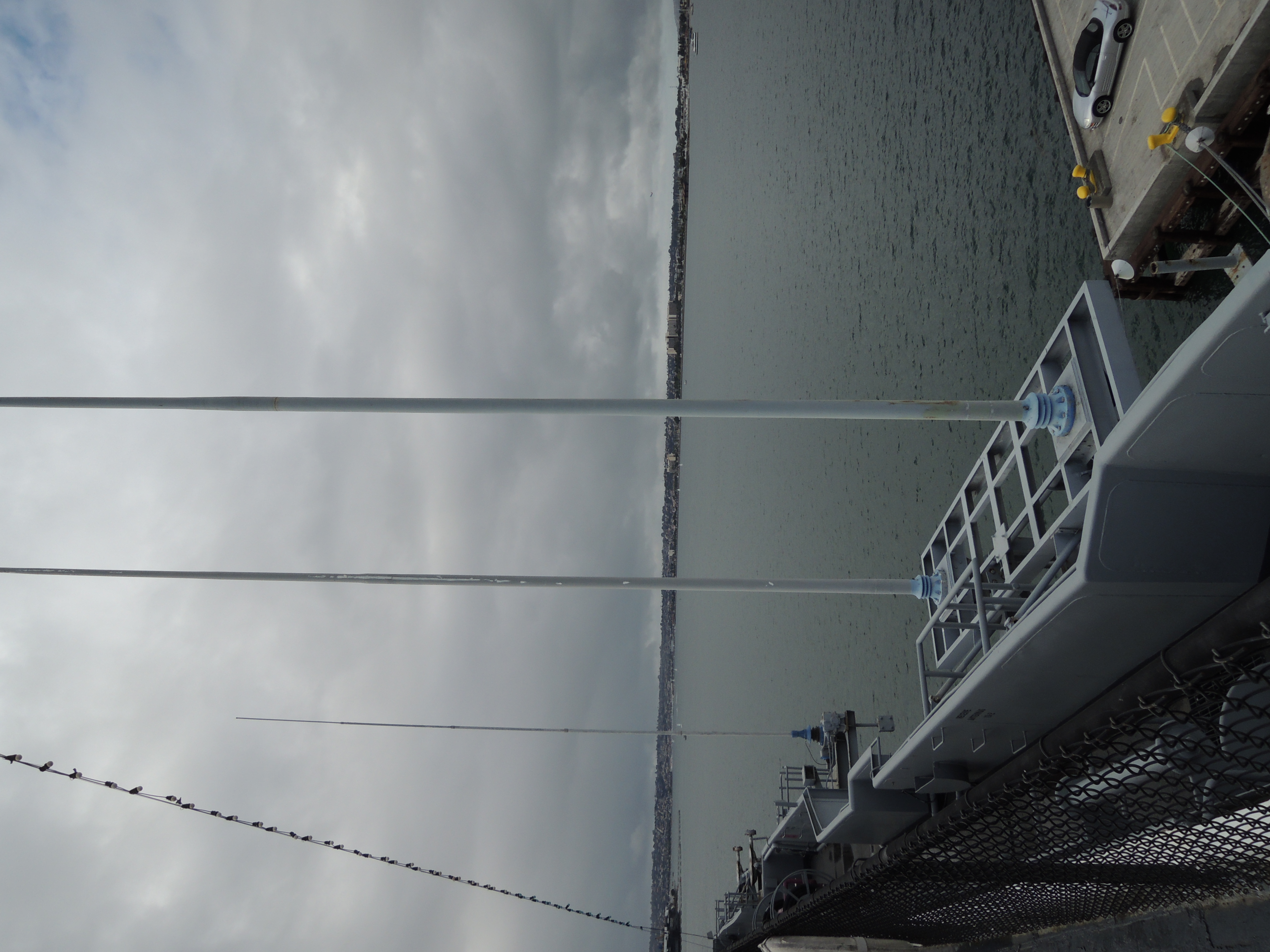 On the bow of the Jersey is the disc-cage antenna. Originally developed