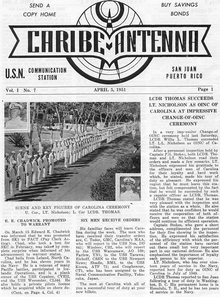 | The "Caribe Antenna" was later renamed "Spectator" | Carolina Caribe Antenna Sept 14, 1951 VOL. 1 No. 16 - thanks to LCDR Gallardo |