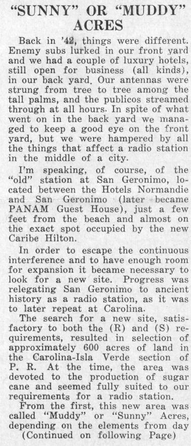 Carolina receiver site 1944-52 (then moved to Sabana Seca) |