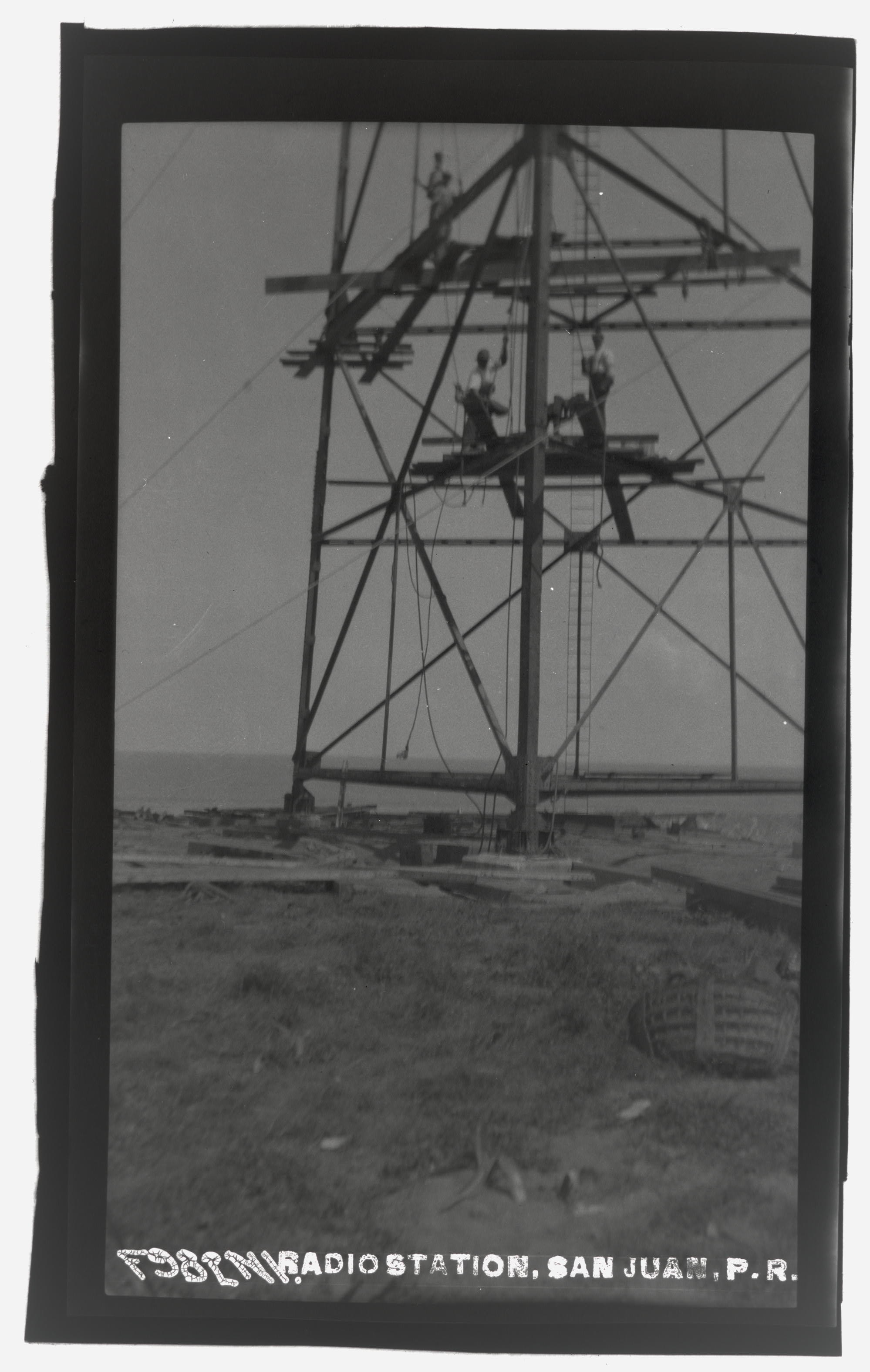| From History San Jose - The U.S. Navy (De Forest) Station, located near the city of San Juan, Porto Rico call letter SA (now NAU) this station's power was 35 KW 60 Cycles. The three towers were 210 feet high, set triangular, 300 feet apart, the antenna had three fans of 15 wires each, 300 feet long, the ground plate was copper laid in an old moat, used in the Spanish time in fortification. | |||