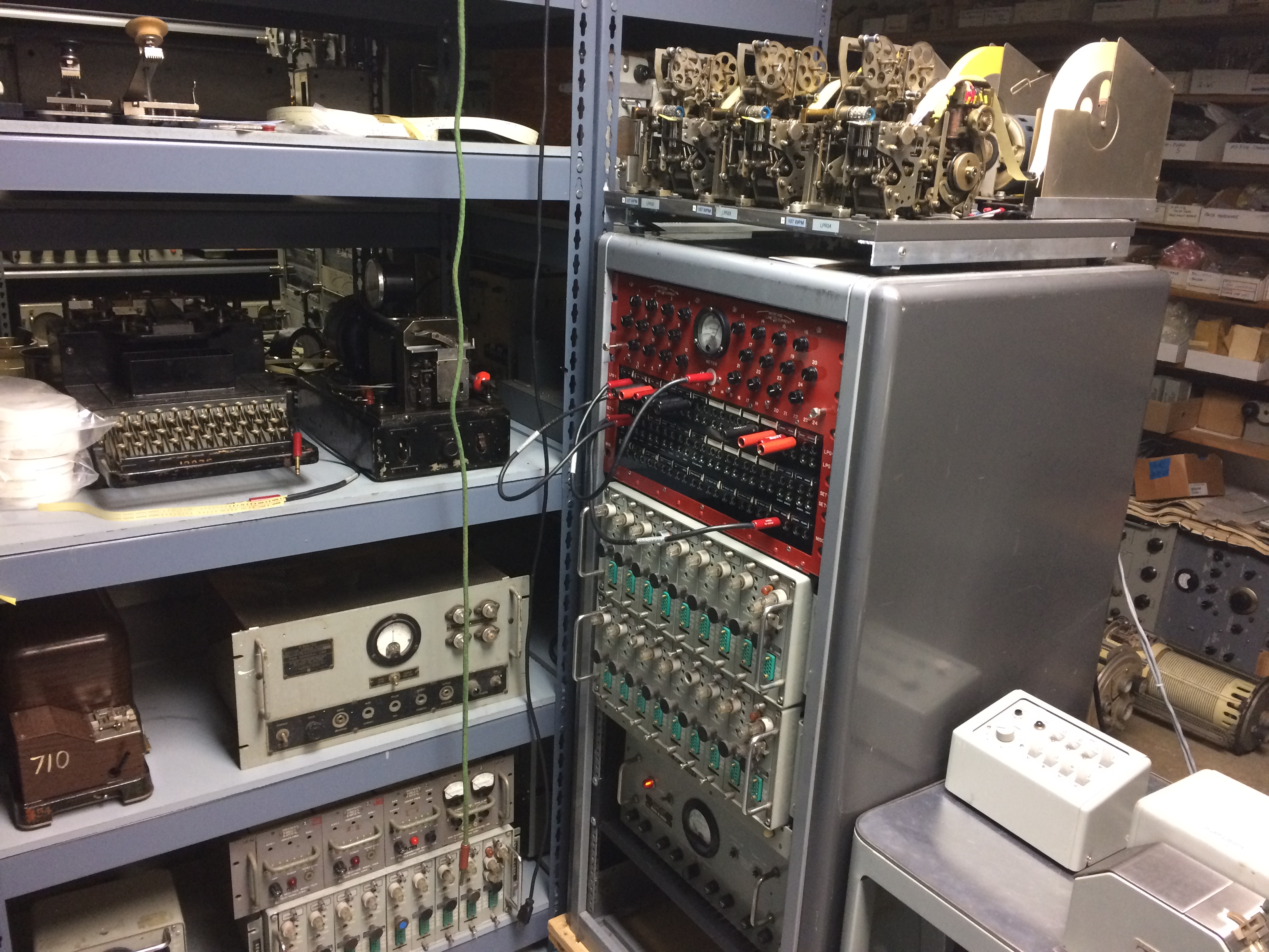 Note - right side shelves not set up yet - will have Wheatstone tape perforators and high speed Morse equipment. |