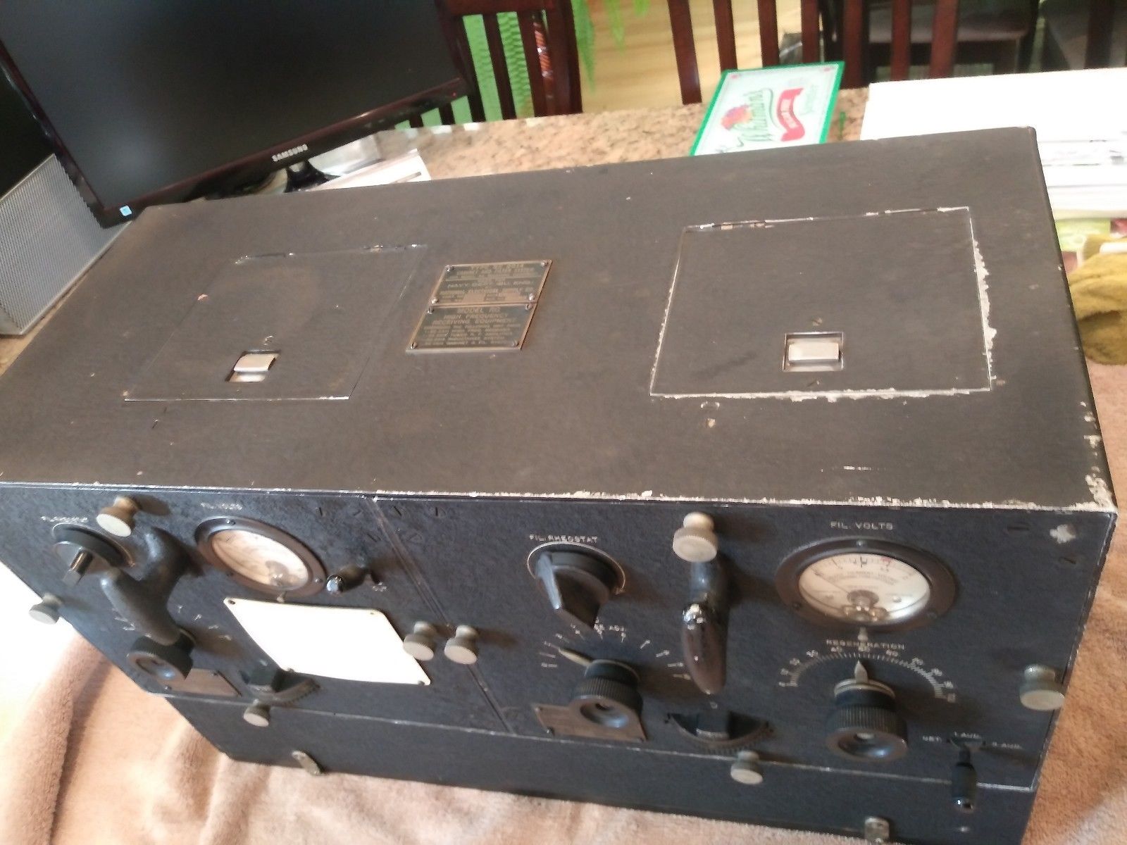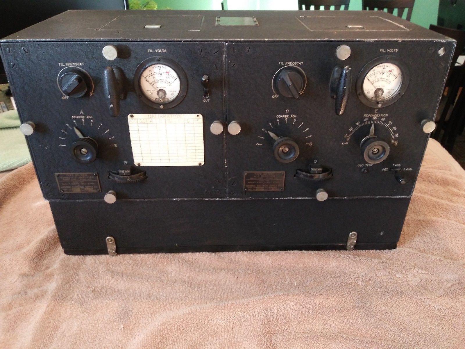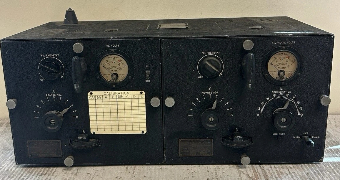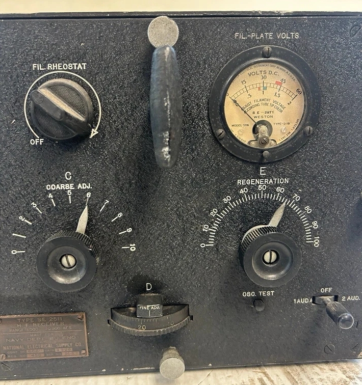 1925 - RMC Gilmour holds 1905 NAA receiver - on table is SE-1420-C receiver and other as yet unidentified equipment (Photo by United) ![]() |