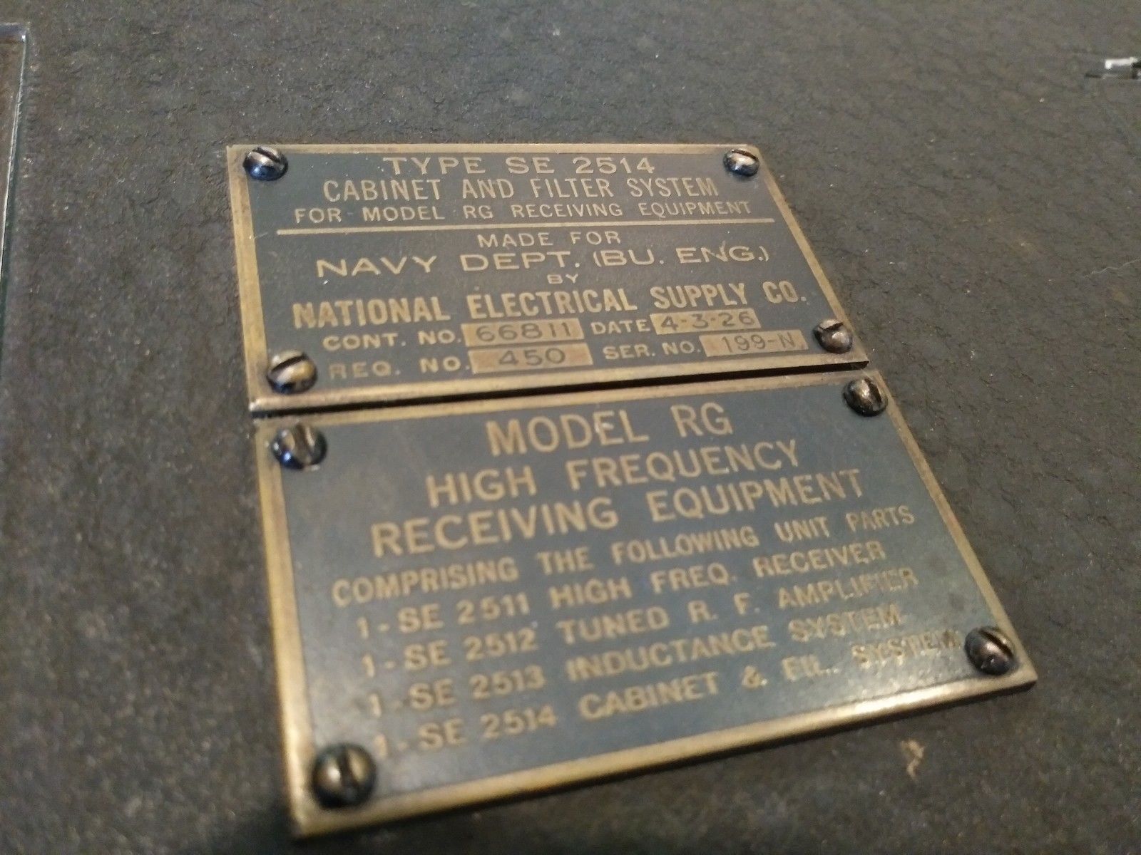 RG - SE-2511 HF Receiver, SE-2512 Tuned RF Amp, SE-2513 Inductance System, SE-2514 Cabinet |