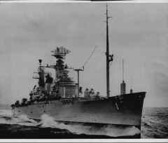 Construction began in 1944 as a Baltimore class cruiser but work halted at the end of WWII. Construction resumed in 1948 with radical alterations and launched in 1951. She was commissioned in 1953 as CLC-1 and became permanent home to Commander Striking Force Atlantic in 1957. In 1961 she was redesignated as CC-1 and served as a "national emergency command post afloat" (NECPA) until decommissioned in 1970 and then sold for scrap in 1977.